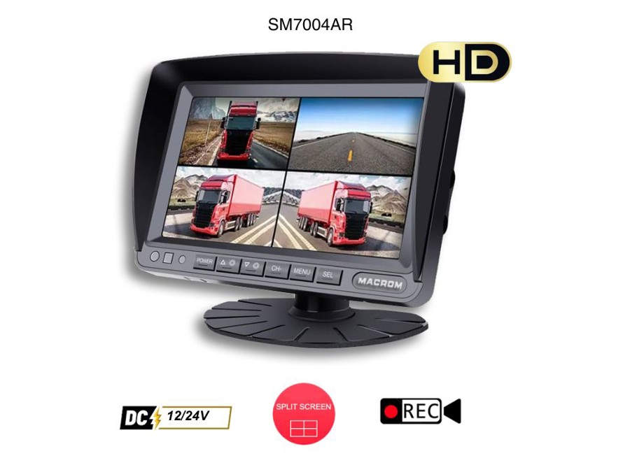 KIT Monitor SM7004AR 7" Quad - REC + one dual camera RCM2299WHQ and two side cameras RCM09WHQ, with 15 mt cable