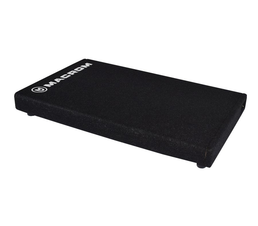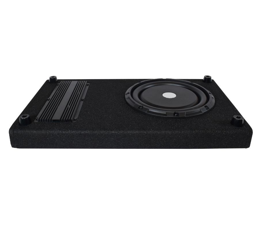 10” amplified subwoofer in sealed box, 350W RMS – compact, powerful and perfect for car trunk installations.