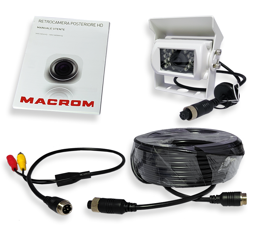 Universal rear camera for campervans with infrared night vision, 1/4" CMOS, IP68, 170° angle, adjustable housing, and 10 m video cable for flexible installation.