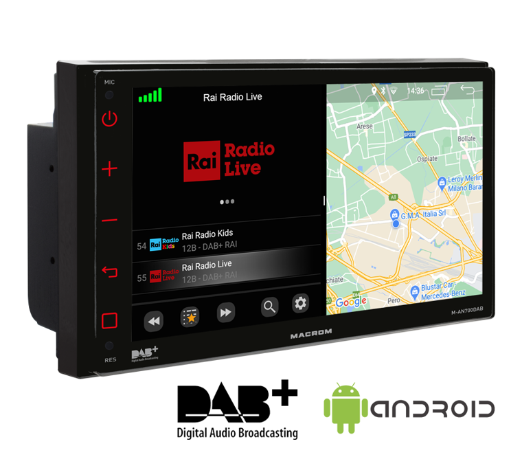 Monitor Multimedia Android 6,75” – 2 DIN Corto con Receptor DAB