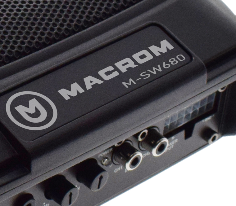 Subwoofer amplificado de 6x8” y 120W en caja sellada, compacto y potente, con bajos profundos incluso en espacios pequeños.