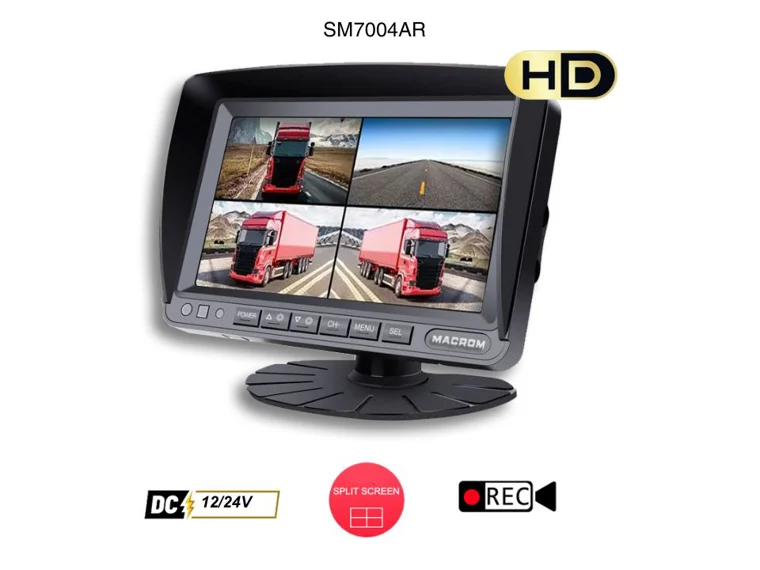 Kit moniteur 7'' Quad Vision avec 4 caméras AHD, vision nocturne, enregistrement sur SD et protection IP68 pour une sécurité maximale sur les camions.