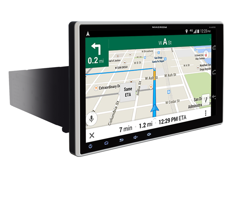 Moniteur Android 9” fin et inclinable avec châssis 1 DIN – pour une intégration élégante et une connectivité avancée à bord.
