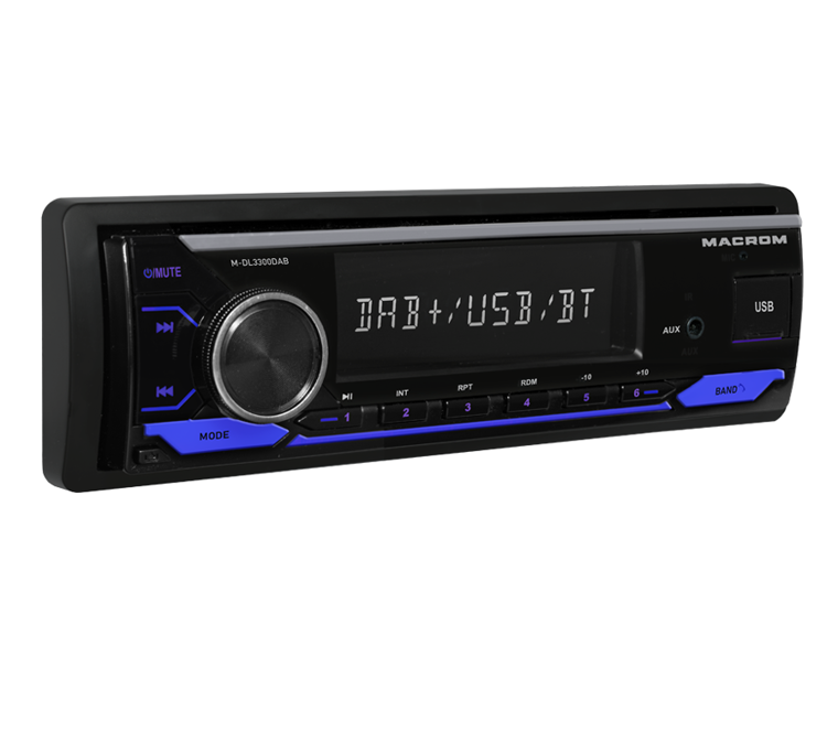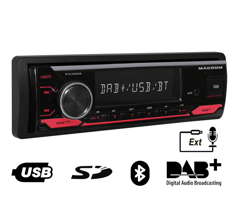 Syntoniseur 1 DIN AM/FM avec DAB+, Bluetooth, USB, SD et kit mains libres. Audio numérique et antenne DAB incluse.