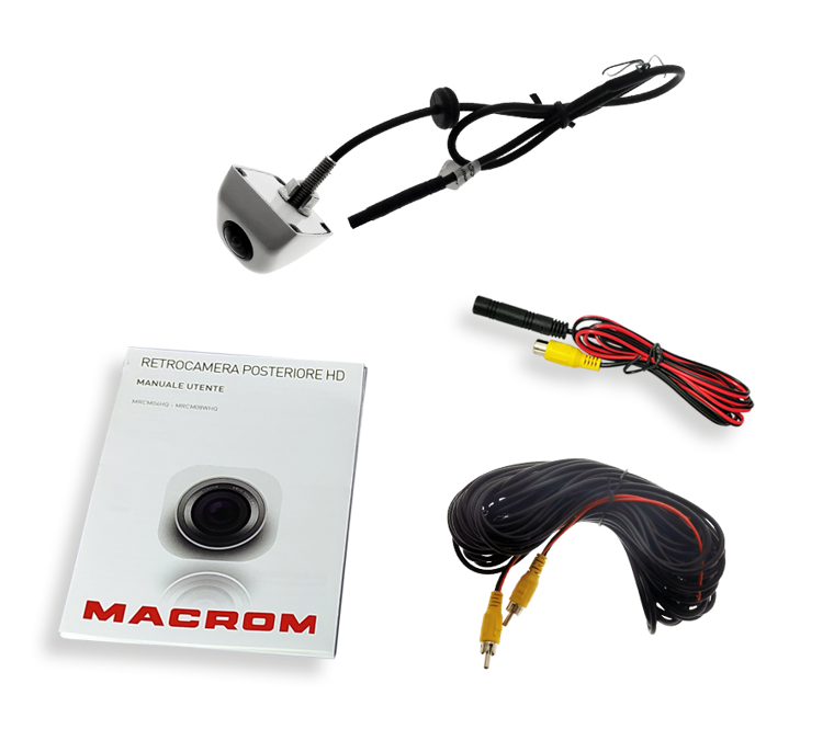 Caméra de recul arrière Easy-Fit AHD/CVBS, CMOS 1/3", Full HD, IP68, angle 150°, lignes de guidage, montage vertical, câble 12 m.
