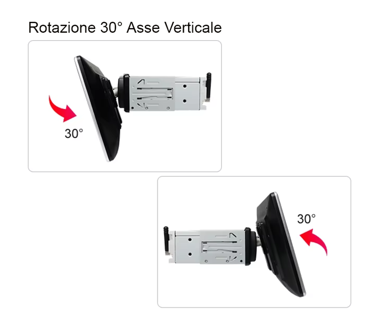 Écran orientable 10,1 pouces, système d'exploitation Android 13 avec mémoire 4+64 Go, 2 entrées caméra et radio RDS/DAB+.