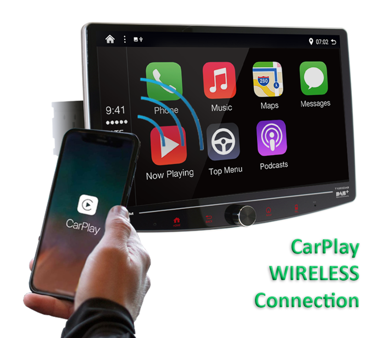 Système sur mesure composé de moniteur T1003DAB ANDROID 13 écran QLED 1920x1080 10' capacitif, corps 1din + supports, câblage P&P et interface de commande au volant CAN-BUS pour Ford Transit à partir de 2019