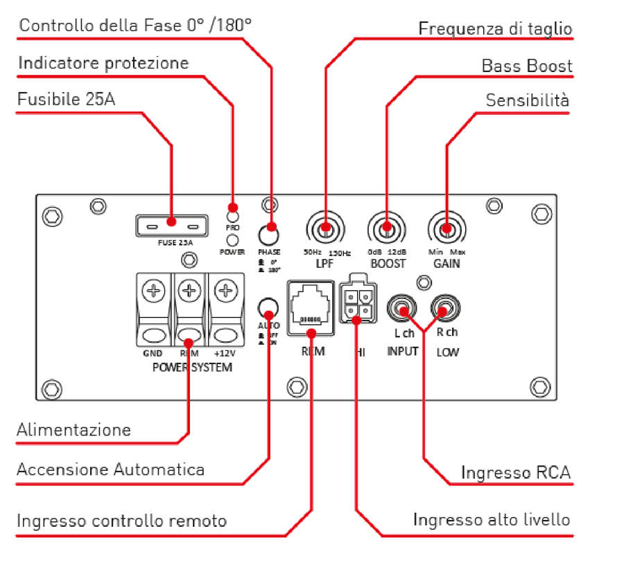 Subwoofer amplificato 8 pollici (200mm) in cassa reflex 200W RMS per baule