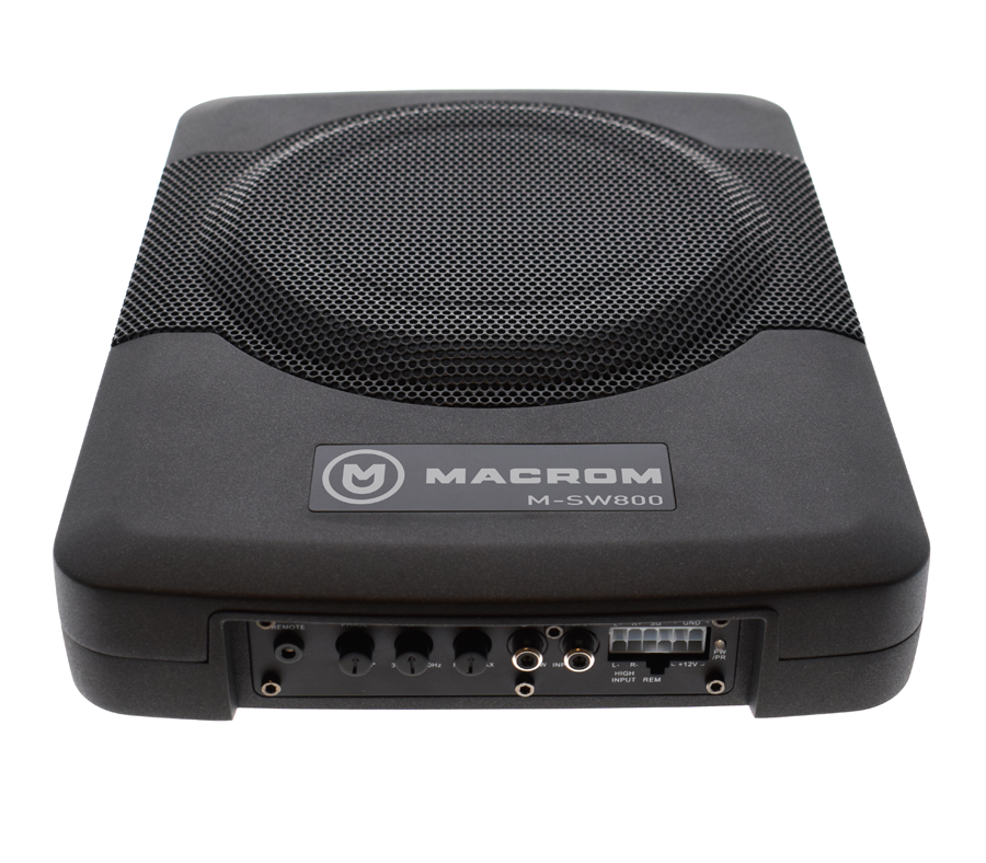 Subwoofer auto amplificato 8” da 200W in cassa chiusa ultracompatta, ideale per installazione sottosedile e bassi potenti.