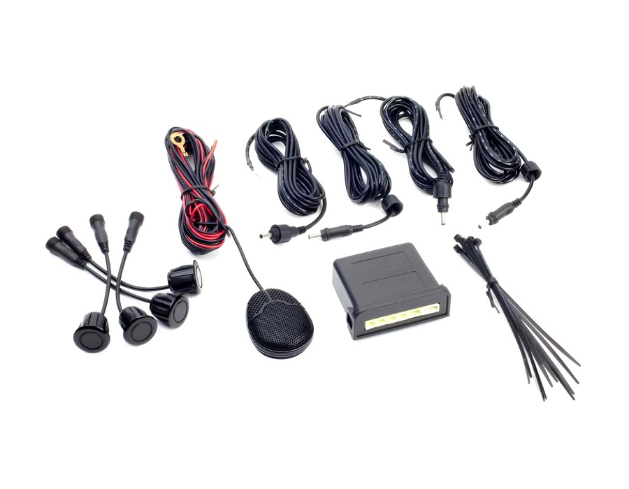 Kit parcheggio posteriore con 4 sensori verniciabili da 19mm, perfetto per manovre sicure e installazioni aftermarket su ogni veicolo.